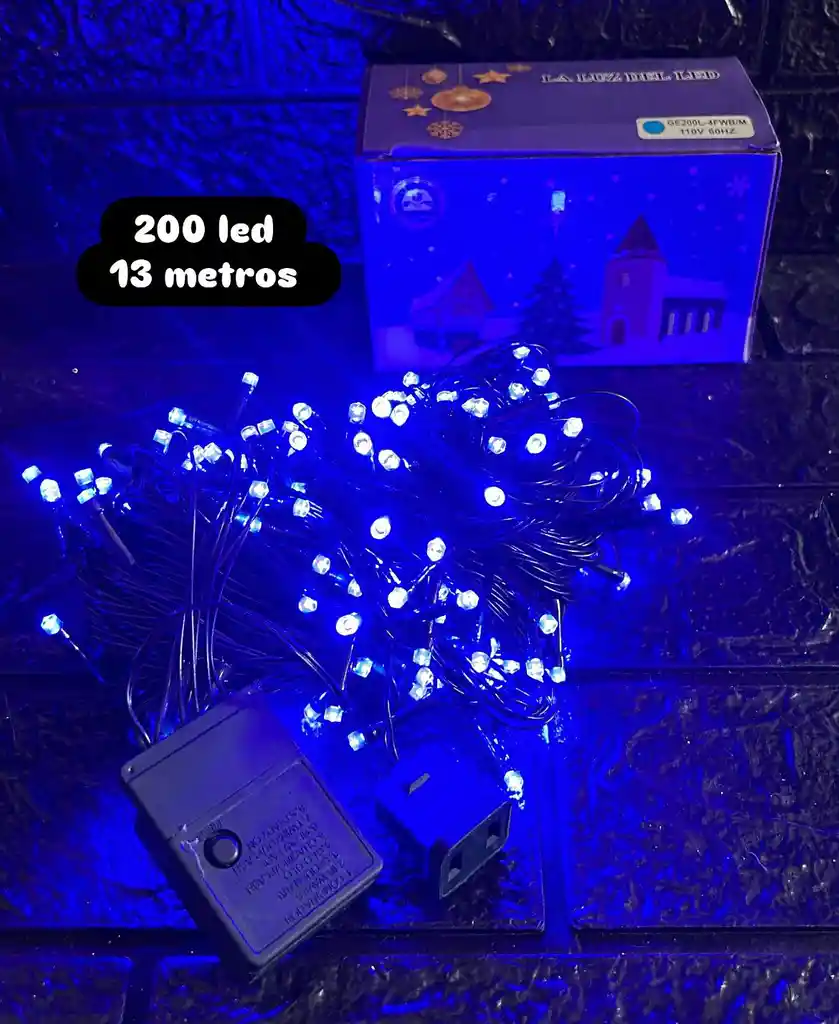 LUCES DE NAVIDAD LINEAL X200 LED AZUL CON CONTINUACION CABLE VERDE COD.4233