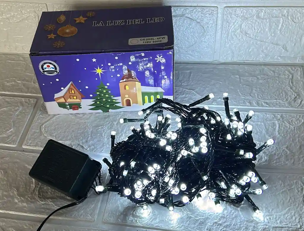 LUCES DE NAVIDAD LINEAL X200 LED BLANCA SIN CONTINUACION CABLE VERDE COD.2585
