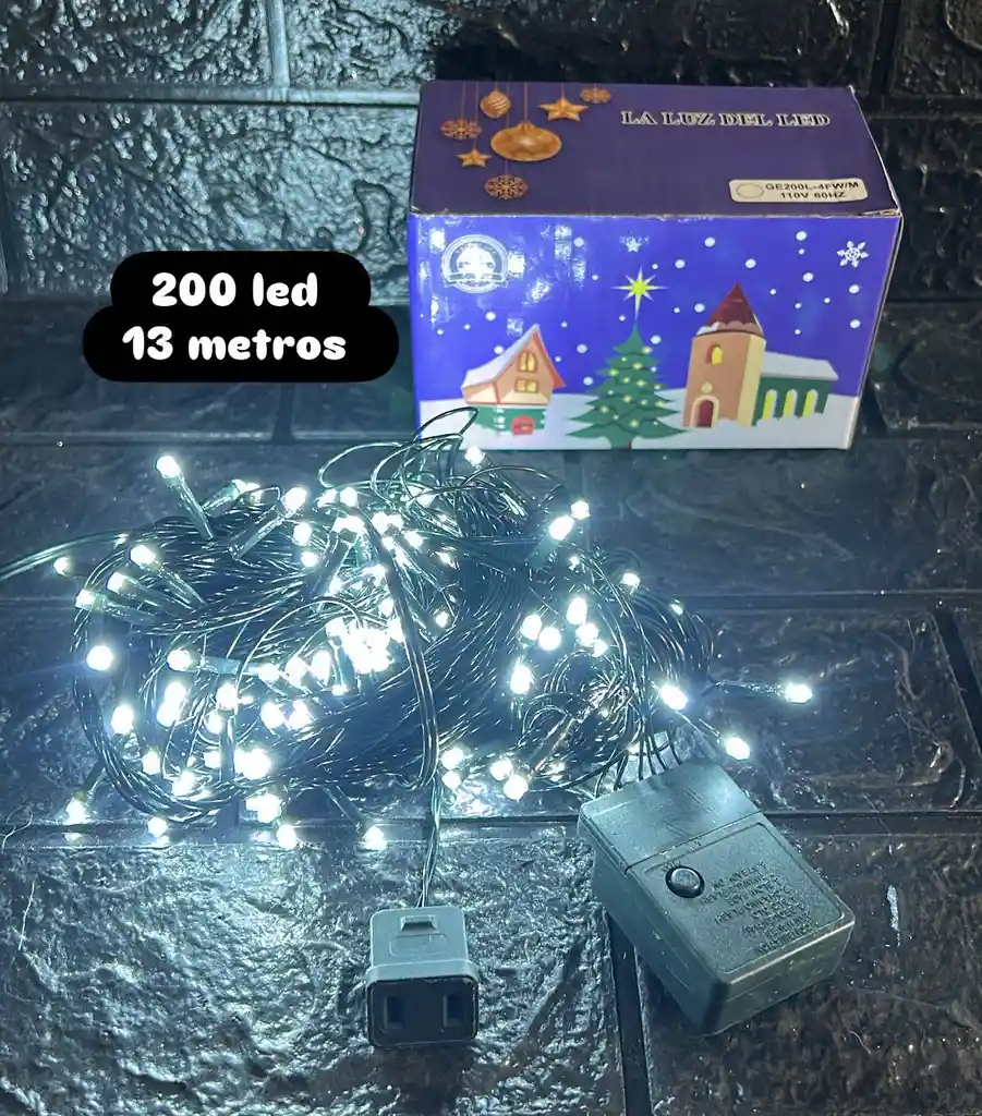 LUCES DE NAVIDAD LINEAL X200 LED BLANCO CON CONTINUACION CABLE VERDE COD.4232