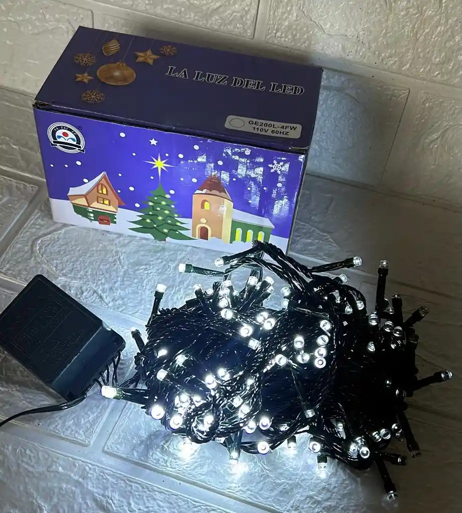 LUCES DE NAVIDAD LINEAL X200 LED BLANCA SIN CONTINUACION CABLE VERDE COD.2585