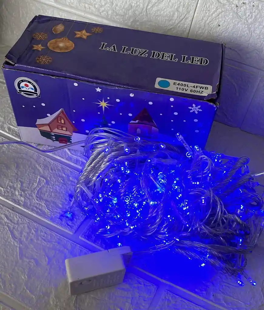 LUCES DE NAVIDAD LINEAL X400 LED AZUL SIN CONTINUACION CABLE TRANSPARENTE COD.2630