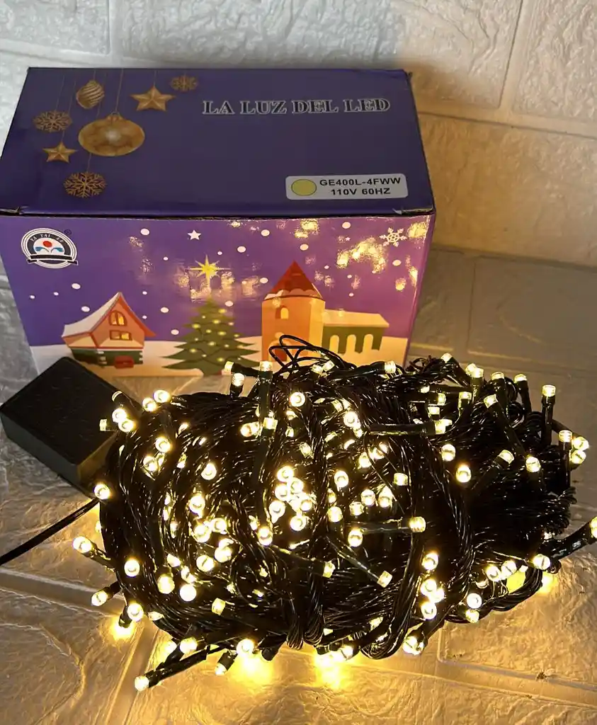 LUCES DE NAVIDAD LINEAL X400 LED CALIDA SIN CONTINUACION CABLE VERDE COD.2632