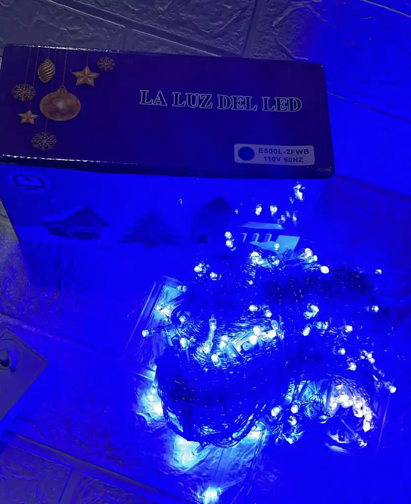 LUCES DE NAVIDAD LINEAL X500 LED AZUL SIN CONTINUACION CABLE TRANSPARENTE COD.2625