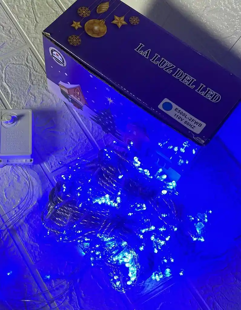 LUCES DE NAVIDAD LINEAL X500 LED AZUL SIN CONTINUACION CABLE TRANSPARENTE COD.2625