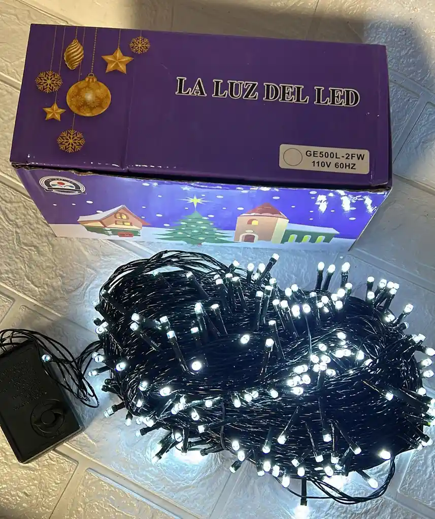 LUCES DE NAVIDAD LINEAL X500 LED BLANCA SIN CONTINUACION CABLE VERDE COD.2623