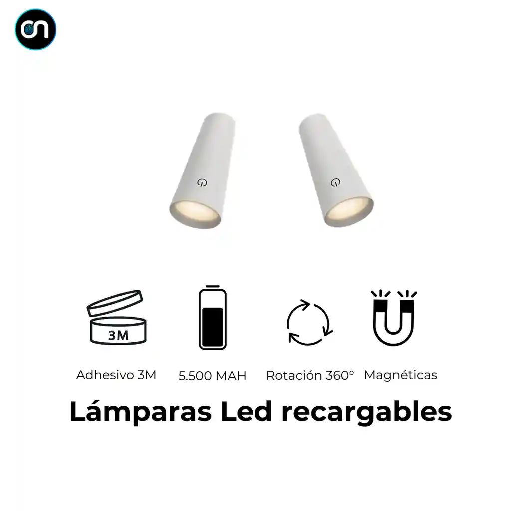 Lámparas LED recargables Ilumina tus espacios con estilo y tecnología avanzada gracias a estas lámparas LED recargables, ideales para crear ambientes personalizados y modernos en cualquier habitación. Cuentan con iluminación LED ajustable en tres niveles de intensidad, diseño elegante de fácil instalación, cinta adhesiva 3M para un pegado rápido y soporte con imán que permite una rotación de 360° para ajustar la dirección de la luz. Ofrecen carga rápida tipo C y hasta 48 horas de iluminación.