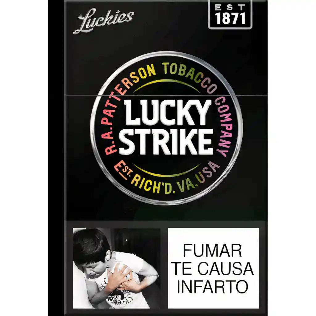 Lucky Strike Cigarrillos x 20 Unidades El tabaco es nocivo para la salud. Ley 30 de 1986. Verificar condiciones de uso, indicaciones y contraindicaciones en la etiqueta. Prohibida la venta a menores de edad