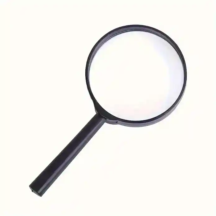 Lupa de mano para lectura, aumento 5X, lente HD, ayuda portátil para adultos mayores, oficina y estudiantes. Color: Negro. Aumento: 5x. Dimensiones: 6cm x 12cm x 1.3cm. Cantidad: 1 und.