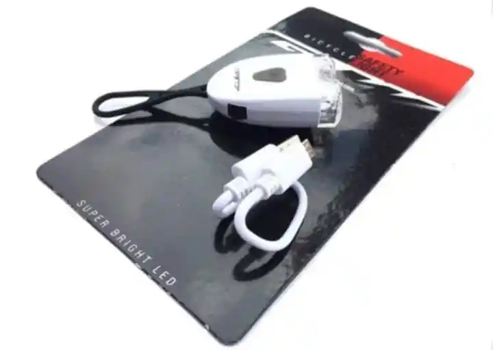 Luz led delantera o trasera Super Bright LED color blanco marca GW para Bicicleta recargable USB:-Luz blanca con 2 posiciones. una de luz con intermitencia y otra de luz fija. -Recargable por el puerto USB-Se puede colocar debajo de la silla-Ajustable a cualquier tipo de bicicleta-Ubicación delantera o trasera-Incluye cable cargador con puerto USB y MiniUSB-Se puede cargar con computador
