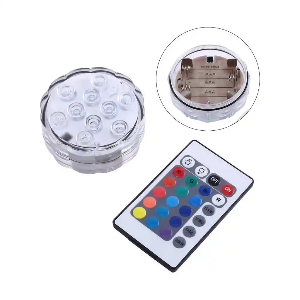 Luz LED Sumergible para Acuario RGB con Control Remoto Ilumina tu acuario con un espectáculo de colores Dale un toque vibrante a tu pecera con nuestra luz LED sumergible RGB, diseñada para resaltar la belleza de tus peces y plantas acuáticas. Su iluminación de espectro completo no solo realza los colores, sino que también promueve el crecimiento saludable de las plantas. Apta para acuarios de agua dulce y salada. Características destacadas Iluminación LED RGB con control remoto Controla fácilmente los 16 colores y efectos de luz con el control remoto de 24 teclas. Cambia la atmósfera de tu acuario con solo un botón. Diseño sumergible e impermeable Fabricado con materiales resistentes y 100% sumergible, ideal para una iluminación uniforme dentro del agua, creando efectos visuales únicos. Ahorro de energía y larga duración Los LED SMD5050 de alta calidad consumen menos energía que las bombillas tradicionales y ofrecen una vida útil prolongada, ideal para un uso continuo. Fácil instalación Incluye soportes ajustables, lo que facilita su instalación en cualquier tipo de pecera sin necesidad de herramientas. ¡Transforma la iluminación de tu acuario en minutos! Especificaciones Material: Plástico resistente Fuente de luz: SMD5050 LED Cantidad de LEDs: 10 unidades Colores: RGB (16 colores ajustables) Fuente de alimentación: 3 pilas AAA (no incluidas) Control remoto: 24 teclas (batería incluida) Tamaño: 2.7 x 0.98 pulgadas Contenido del paquete 1 luz LED para acuario (pilas no incluidas) 1 control remoto (batería incluida) Dale a tu acuario la iluminación perfecta y crea un ambiente único con colores vibrantes. ¡No esperes más y consíguelo ahora!