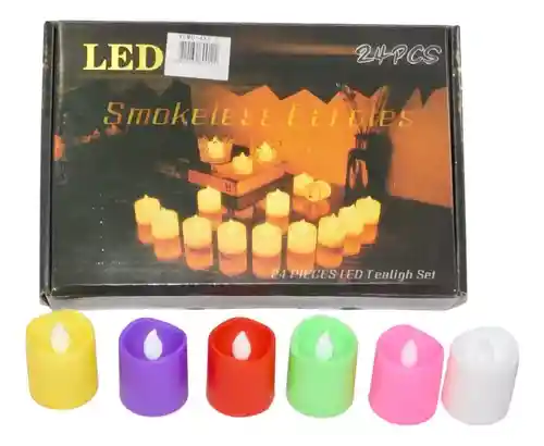 VELADORAS ELÉCTRICAS REF VEMU-4*3.7 LOS 12 UND colores surtidos POR 12 UND SISTEMA LED PARPADEANTE PILAS YA INCLUIDAS SE ENVÍAN 12 VELAS MEDIDAS DE LA VELAS 4 X 3,7 CM PILAS INCLUIDAS MATERIAL PASTA