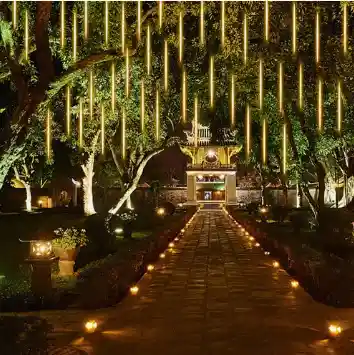 Luz Navidad Led blanco frio - Lluvia de Meteoritos 8 Tiras (cada tira tiene 50cm de caida) - Tiene 3 Metros de ancho + 80cm del cable del enchufe DIRECTO 220V - EXTERIOR IDEAL ARBOLES - TECHOS - NAVIDAD Luz de lluvia de meteoritos LED: luces de lluvia de meteoritos LED, la luz de cada led se enciende y apaga uno por uno en secuencia y rápidamente como lluvia de meteoritos o nieve que cae en el cielo nocturno, muy hermosa. Se puede utilizar como uno o conectarse (hasta 3 luces de lluvia que caen) Alta calidad y eficiencia energética: chips LED súper brillantes, las luces de tubo son impermeables IP65, a prueba de polvo, material de PC transparente, resistente a la corrosión, resistente a los costos, resistente al envejecimiento, más duradero, libre de limitaciones de tiempo y espacio. Bajo consumo de energía y ahorro de energía, si obtienes un juego con 8 tubos en cascada al mismo tiempo, simplemente conéctalo durante un cierto tiempo, se cascada al azar, porque cada tubo tiene un IC individual, cada tubo caerá al azar
