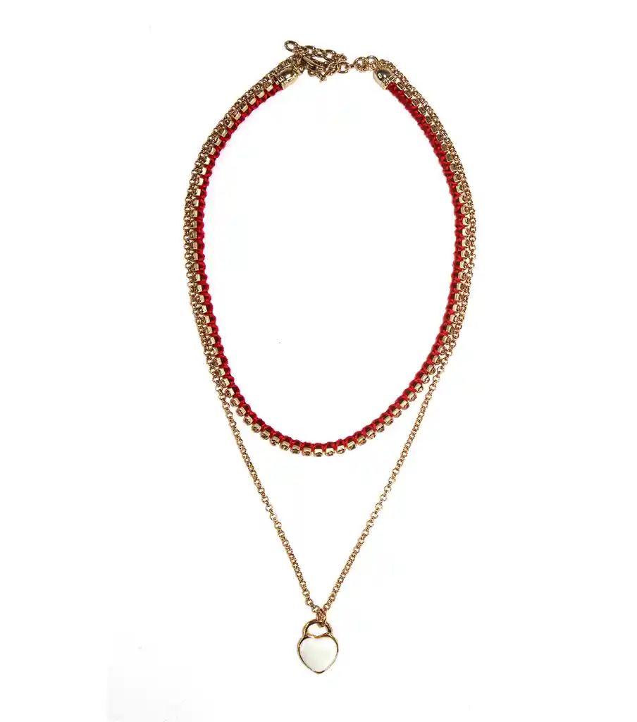 Collar elaborado artesanalmente que integra en su diseño único diferentes elementos que lo llenan de simbolismo. Es una pieza atemporal y muy juvenil , que brinda múltiples oportunidades para combinarlo y sin dudarlo al momento de lucirlo no pasarás desapercibida; por el contrario, te hará brillar. Producto distribuido por Paralelos Accesorios Materiales: Gargantilla en textil y cristales sintéticos tejido Cadena en bronce con baño en oro brillante Dije Acero con resina pintada Largo cadena : 45 cm Largo Gargantilla 35 cm Peso: 25 gramos - Garantía de 30 días en acabados bajo condiciones normales de uso - Al ser una pieza ensamblada de forma artesanal el producto entregado puede presentar diferencias de colores y acabados al expuesto en la fotografía