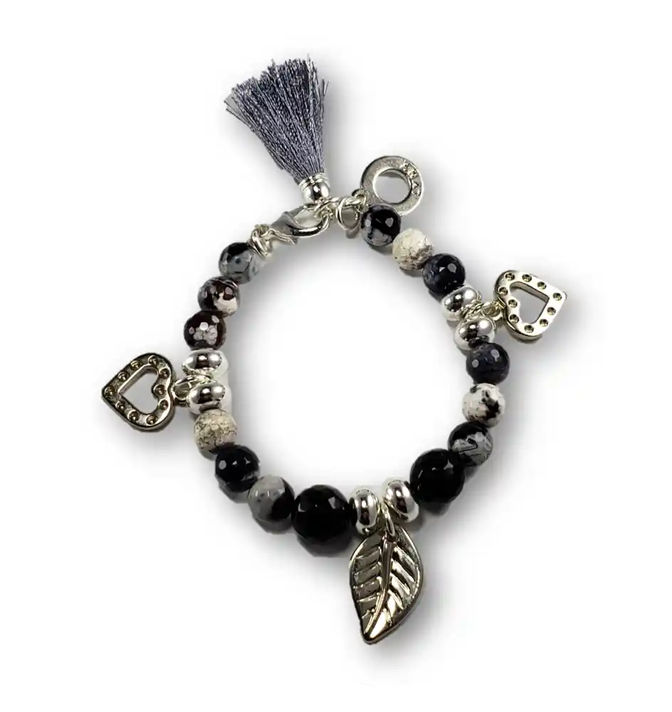 Así como únicas, cada pulsera cuenta una historia llena de sentimientos y buenos recuerdos. Dale un toque diferente a tu outfit para que la magia de nuestras pulseras perdure todo el día, pues las hemos creado llenas de significado y amor para inspirar y empoderar. Producto distribuido por Paralelos Accesorios Tipo de pulsera: Rígida con broche Materiales -Gemas: Vidrio -Dije: Acero plateado -Elementos metálicos: Aleación con baño plateado Tamaño aproximado: 18 cm de diámetro Peso: 35 gramos - Garantía de 30 días en acabados bajo condiciones normales de uso. Cada pulsera integra diferentes elementos y materiales que merecen un cuidado especial. - Al ser una pieza ensamblada de forma artesanal el producto entregado puede presentar diferencias de colores y acabados al expuesto en la fotografía