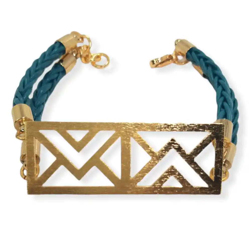 Así como únicas, cada pulsera cuenta una historia llena de sentimientos y buenos recuerdos. Dale un toque diferente a tu outfit para que la magia de nuestras pulseras perdure todo el día, pues las hemos creado llenas de significado y amor para inspirar y empoderar. Producto distribuido por Paralelos Accesorios Tipo de pulsera: Pulsera rígida con broche Materiales -Tejido: cuero sintético -Dije: Placa en bronce con baño en oro brillante -Elementos metálicos: bronce con baño en oro 18k Tamaño aproximado: 16 cm de diámetro (talla pequeña) Peso: 10 gramos - Garantía de 30 días en acabados bajo condiciones normales de uso. Cada pulsera integra diferentes elementos y materiales que merecen un cuidado especial. - Al ser una pieza ensamblada de forma artesanal el producto entregado puede presentar diferencias de colores y acabados al expuesto en la fotografía