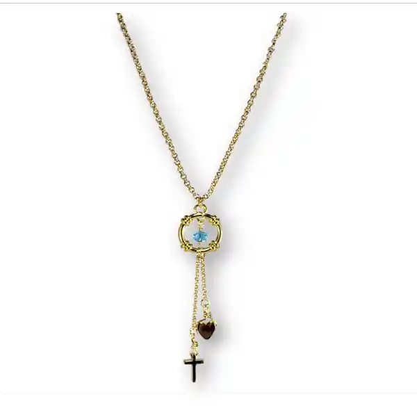 Cadena en Bronce Con Baño en Oro 18k Libre de Níquel. Dijes Elaborados en Aleación Metálica y Cristal Sintético.