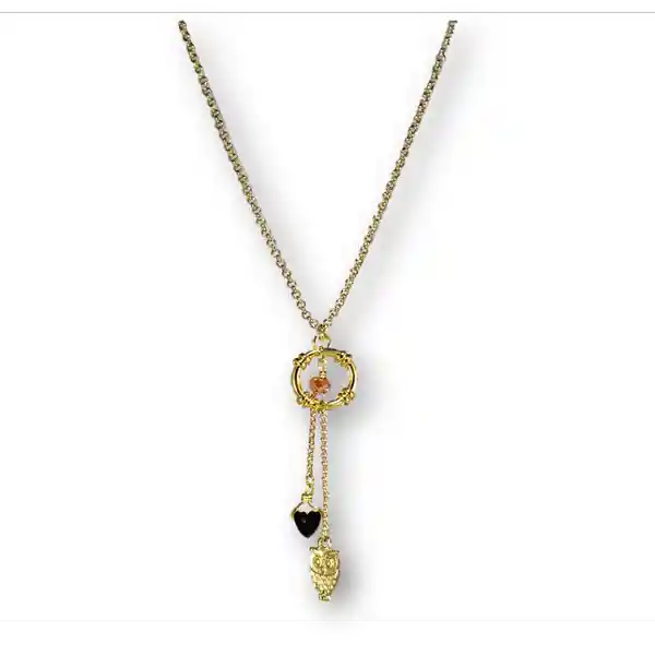 Cadena en Bronce Con Baño en Oro 18k Libre de Níquel. Dijes Elaborados en Aleación Metálica y Cristal Sintético.