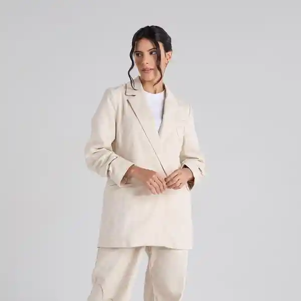 Blazer arena de cuello y solapa clásica, con manga larga. Presenta bolsillos delanteros de ribete, cierre frontal con botón y arte bordado en el delantero. Composición: Cuerpo: 79% algodón, 21% lino. Forro: 100% rayón viscosa. La modelo mide 1.60 m y usa talla S. Cuidados especiales: Leer la etiqueta de cuidados antes de lavar.