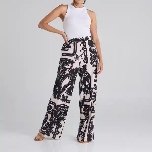 Pantalón estampado en tono arena, de corte recto, con bolsillos delanteros funcionales y pretina semiresortada. Composición: 88.7% Poliéster, 11.2% Elastómero. La modelo mide 1.60 m y usa talla S. Cuidados especiales: Leer la etiqueta de cuidados antes de lavar.
