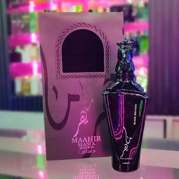 Perfume "MAAHIR BLACK EDITION LATTAFA PERFUMES" 100% garantizado. Cada perfume viene con el empaque y caja como se muestra en la foto. 1.1 Maahir Black Edition de Lattafa Perfumes es una fragancia de la familia olfativa Oriental Especiada para Hombres y Mujeres. Las Notas de Salida son pimienta negra, pimienta rosa y azafrán las Notas de Corazón son Petróleo de Cade, ládano, bálsamo de Gurjum y ruibarbo las Notas de Fondo son cuero, cedro, madera de gaiac, pachulí, musgo y almizcle.