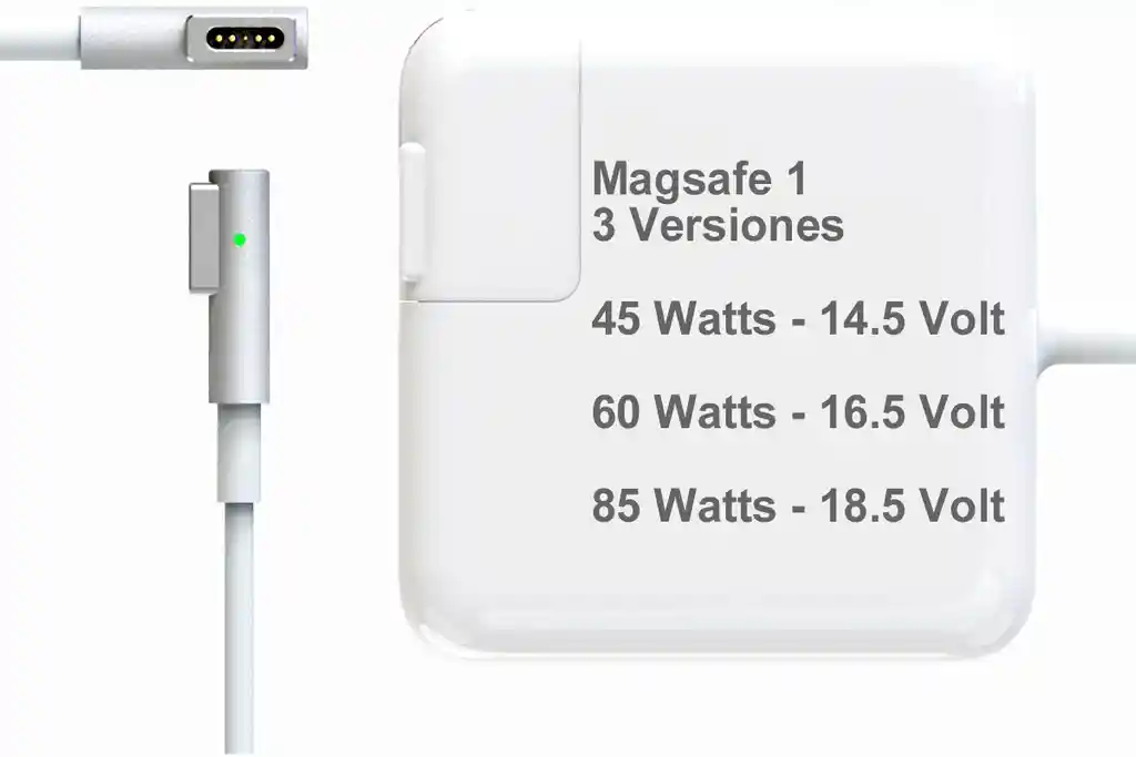 Cargador para computador portátil MacBook, MacBook pro, 14,5 Voltios/ 3,1 Amperios/ 45 Watts, punta de conexión Magsafe 1. Maneja 120 días de garantía técnica (No cubre daños físicos, descargas eléctricas o humedad). Versión genérica homologada.