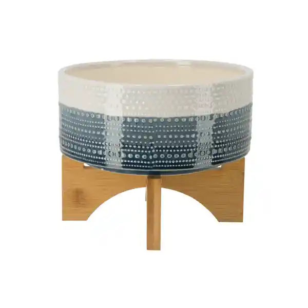 Maceta Con Distintos Colores y Con Base de Madera de Bambú. Medidas: Alto: 10 cm. Diámetro: 21 cm. Composición: Cerámica. ''En Casaideas Encontrarás Artículos de Diseño. Para Vivir Día a Día en un Espacio Que te Haga Feliz.''