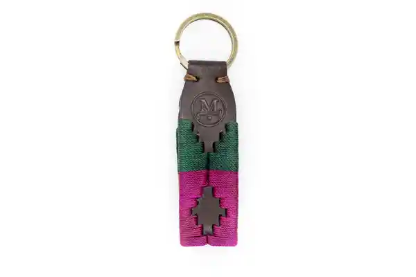 De Cuero Café Negro Con Tejido Rosado. Verde y Fucsia.