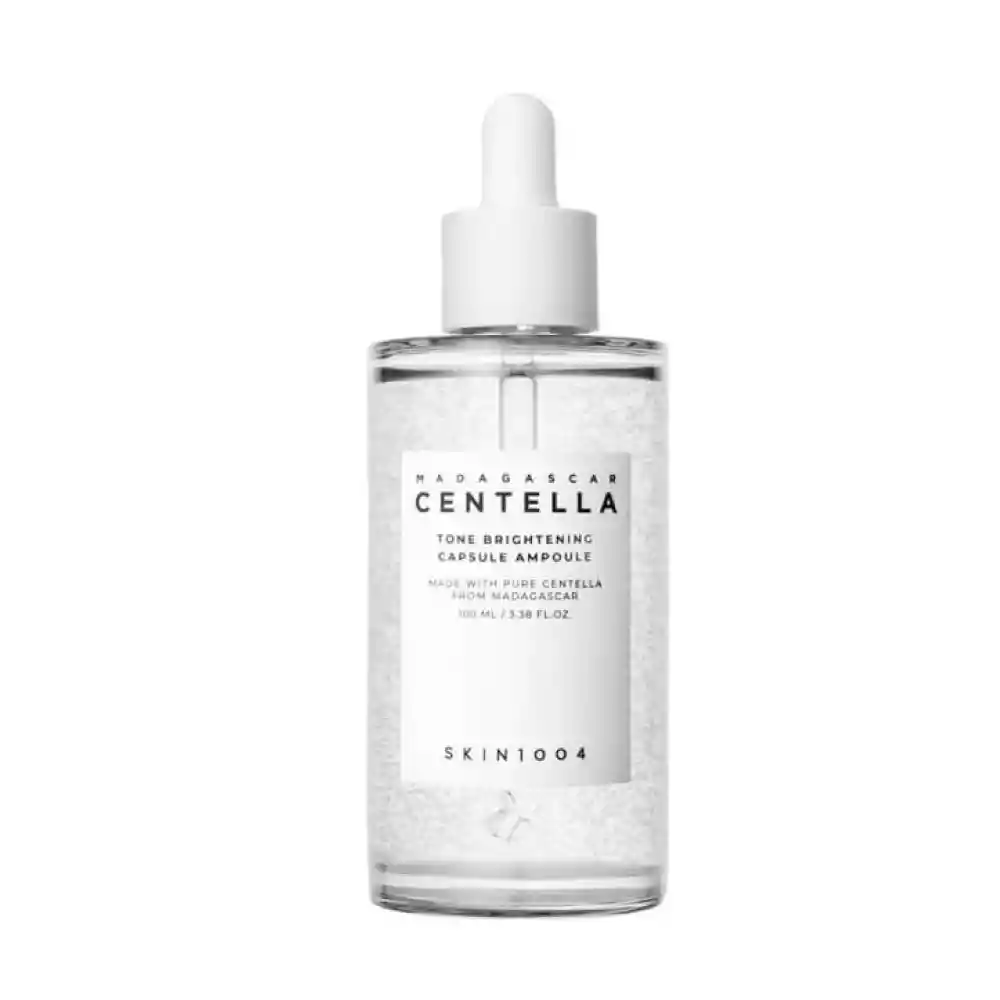 La Madagascar Centella Tone Brightening Capsule Ampoule es un potente sérum que ayuda a mejorar el tono de la piel y a reducir manchas oscuras. Su fórmula contiene un 77% de extracto de Centella Asiática, conocido por sus propiedades calmantes, junto con activos despigmentantes como el 4% de niacinamida y el 2% de ácido tranexámico.