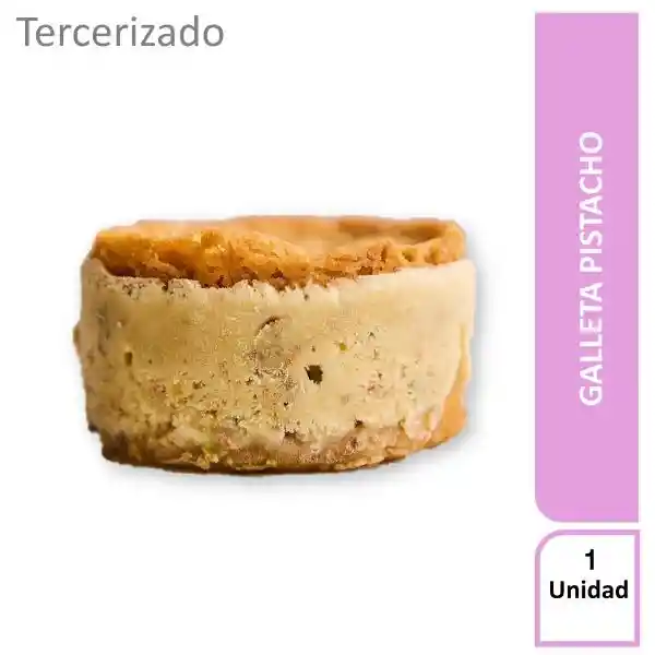 Doble Galleta de Vainilla Con Helado de Pistacho Natural. Helado Con Textura Sabor y Color de Auténtico Pistacho y Trozos de Pistachos Tostados.