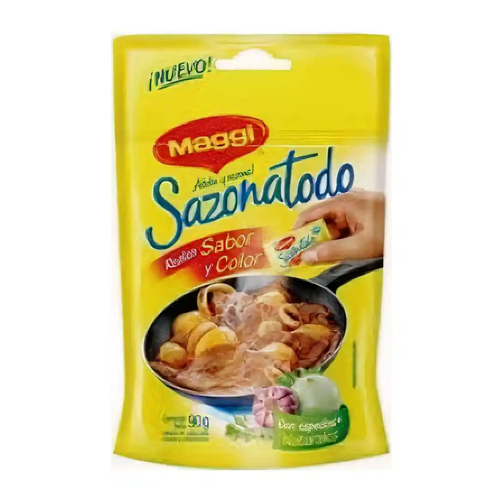 Sazonatodo Maggi® ¡Es La Mezcla Perfecta Para El Buen Sabor! Contiene Cebolla Ajo Sal Condimentos Especiales Como Pimienta Comino Cúrcuma Nuez Moscada Además Contiene Hierbas Seleccionadas Como Cilantro Laurel Orégano Romero Y Apio. Es Un Sazonador Muy Completo Que Te Ayuda A Realzar El Sabor Y Color De Tus Comidas.. Sal Harina De Maíz Mezcla De Especias (Cilantro Pimienta Ajo Comino Orégano Cebolla Apio Laurel Cúrcuma Nuez Moscada) Acentuador De Sabor (Glutamato Monosódico) Azúcar Extracto De Levadura Anticompactante (Fosfato Tricálcico) Almidón De Yuca Y/O Maíz Vino En Polvo.