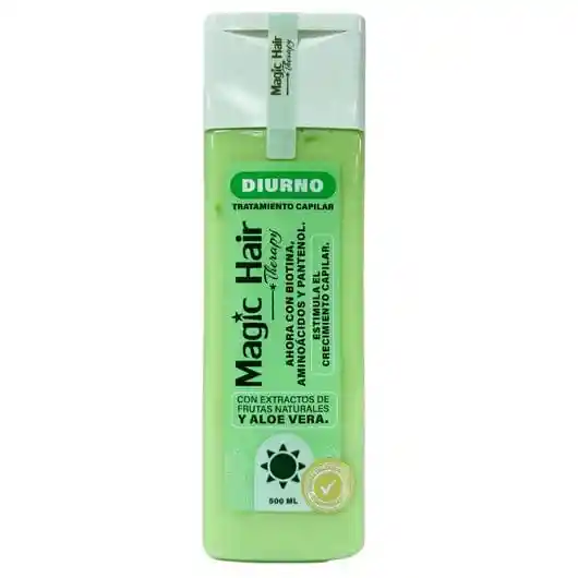 MAGIC HAIR TRATAMIENTO DIURNO 500 ML : mezcla lo mejor de la naturaleza con componentes que cuentan con estudios científicos para comprobar su efectividad en la reparación del cabello. Promueve el crecimiento del cabello y detiene la caída del mismo. tratamiento para el crecimiento del cabello con FÓRMULA MEJORADA incorpora ingredientes de vanguardia que transformarán tu experiencia capilar. El componente estrella Capilmax, respaldado por estudios científicos, trabaja en sinergia con biotina, colágeno, zinc y pantenol para ofrecer resultados visibles. Este tratamiento para crecer el cabello está diseñado para hombres, mujeres y jóvenes que buscan revitalizar su cabello desde la raíz. Estimula el folículo piloso, logrando un crecimiento del cabello notablemente más rápido y saludable Fortalece la hebra capilar desde el interior con nuestra combinación de vitaminas para el cabello crecimiento Revitaliza el cabello debilitado aportando elasticidad y resistencia a las fibras capilares Mantiene el cuero cabelludo en óptimas condiciones gracias a sus ingredientes naturales de alta calidad Proporciona hidratación profunda y previene la rotura, devolviendo el brillo natural a tu cabello Transforma tu cabello ahora con nuestro tratamiento para el crecimiento del cabello Magic Hair. Experimenta el poder de una fórmula científicamente respaldada que hace que te crece pelo de forma visible y saludable. Nota: No se dispone de estudios para su uso en mujeres embarazadas. REGISTRO SANITARIO INVIMA: NSOC31262-24CO Modo de Uso - Tratamiento Diurno Magic Hair PASO 1: Asegúrate de que tu cabello esté seco y preferiblemente sucio para una mejor absorción de los ingredientes activos. PASO 2: Distribuye el tratamiento generosamente desde la raíz hasta las puntas, asegurándote de cubrir completamente todo tu cabello. PASO 3: Para potenciar la absorción y maximizar los beneficios del tratamiento, coloca un gorro térmico sobre tu cabello tratado. PASO 4: Deja actuar el producto entre 30 minutos y máximo 2 horas con el gorro térmico puesto. PASO 5: Retira el gorro, enjuaga y lava normalmente con tu shampoo y acondicionador Magic Hair habituales. PASO 6: Para obtener resultados óptimos, aplica el tratamiento 2-3 veces por semana de manera consistente. PASO 7: Alterna con otros tratamientos Magic Hair que estés usando, rotando los productos en diferentes días de la semana para un cuidado integral. NOTA IMPORTANTE: El uso del gorro térmico potencia significativamente la absorción del tratamiento, maximizando sus beneficios para tu cabello.