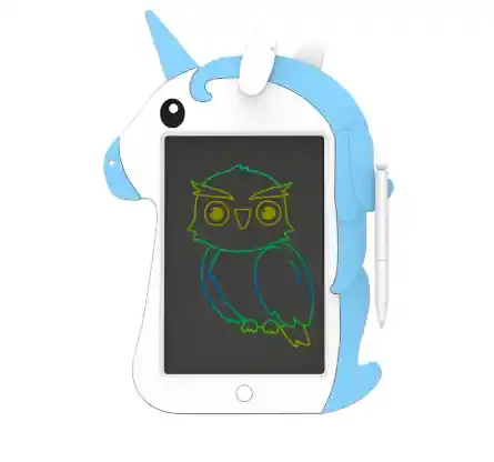 Tablero de escritura LCD de unicornio de dibujos animados para niños, juguetes de dibujo, herramientas de aprendizaje educativo ***COLOR SUJETO A DISPONIBILIDAD DE INVENTARIO,PUEDE LLEGAR ROSADO ,AZUL ENTRE OTROS*** -Bonita forma de unicornio: diseñado con una adorable imagen de unicornio, este juguete educativo y de aprendizaje es muy popular entre los niños que aman los unicornios. El borde rosa está hecho de plástico suave para evitar daños accidentales, totalmente seguro para tus pequeños. -Protección ocular y colorida: Esta tablet de escritura cuenta con una visualización LCD que protege los ojos de los niños de la luz azul, el deslumbramiento y la radiación. La visualización es colorida y sensible a la presión, puedes crear líneas en colores arcoíris con diferentes grosores utilizando el bolígrafo incluido, tus uñas o cualquier objeto duro. -Fácil de usar: los niños pueden garabatear y borrar toda la visualización con solo un clic en el botón de borrado. Habilita el botón de bloqueo en la parte posterior para mantener tus obras de arte hasta la próxima liberación de la imaginación. -Hecho de material duradero,y construido para jugar y durar. Ideal para mantener a los niños ocupados.