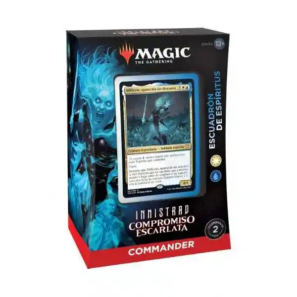 Elige tu comandante y enfréntate tanto a amigos como a enemigos. Invoca a Millicent y su batallón de espíritus voladores y escolta tus oponentes al mas allá. Aunque exorcicen a tus fantasmas, otros se materializaran en su lugar. Idioma: Español Contenido: 1 carta foil comandante en grabado especial -2 cartas legendarias formato foil - 98 cartas adicionales de Magic The Gathering - 10 cartas de ficha de 2 caras - 1 rueda de vidas - 1 caja guarda mazo - Hoja de estrategia