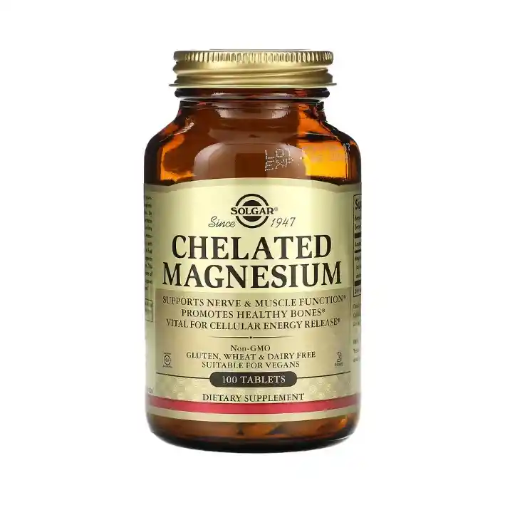 Magnesio Chelated Quelado 100 Tabletas Vegetarianas Solgar Sabor Sin Sabor