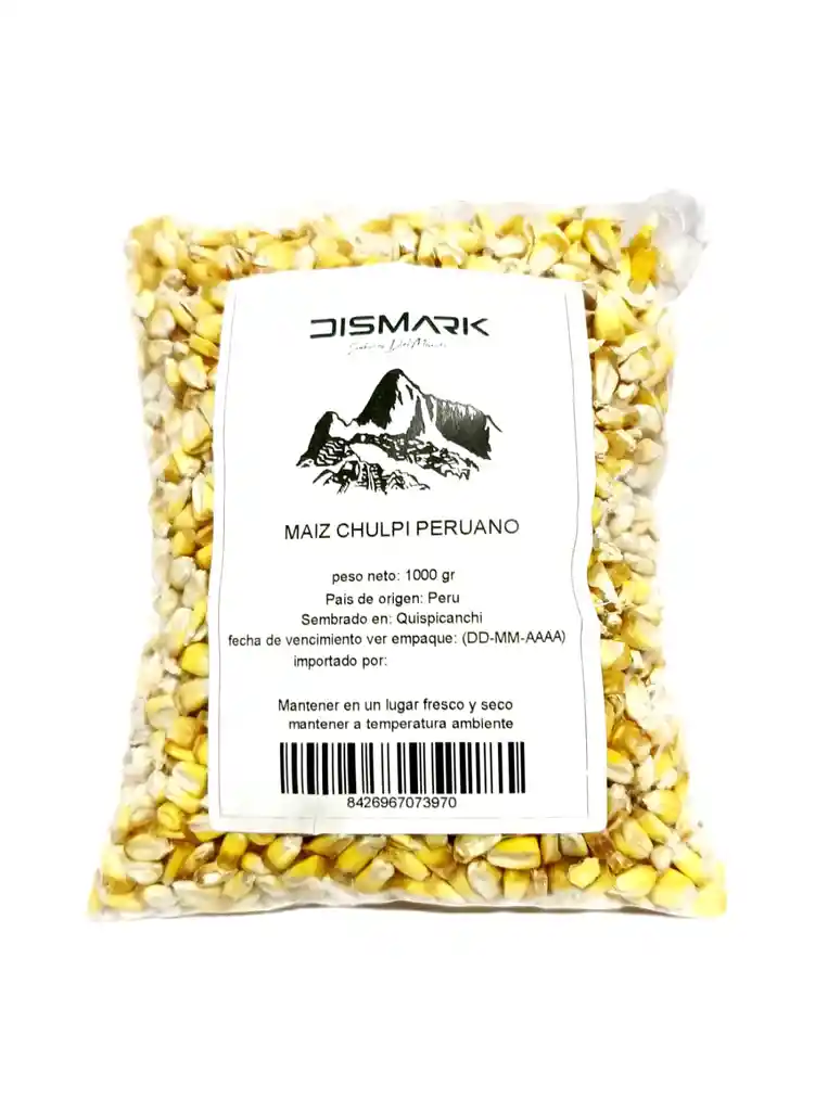 _________________________ Dismark S.A.S _________________________ El maíz Chulpi que traemos es importado directamente de Perú y es una variedad de maíz de grano pequeño y dulce sabor, por lo que es conocido y apreciado. Se consume tostado como acompañamiento de comidas o como aperitivo. Esta variedad de maíz es típica de la gastronomía andina, principalmente de Perú. El maíz Chulpi es rico en carbohidratos, proteínas y algunos minerales como el magnesio. Cuando se come tostado, el maíz Chulpi, se conoce también como Cancha tostada. Preparación: Se calienta a fuego lento una sarten con un poco de aceite, se añaden los granos de maíz chulpi con un poco de sal. Se remueven constantemente hasta que el maíz chulpi se dore.