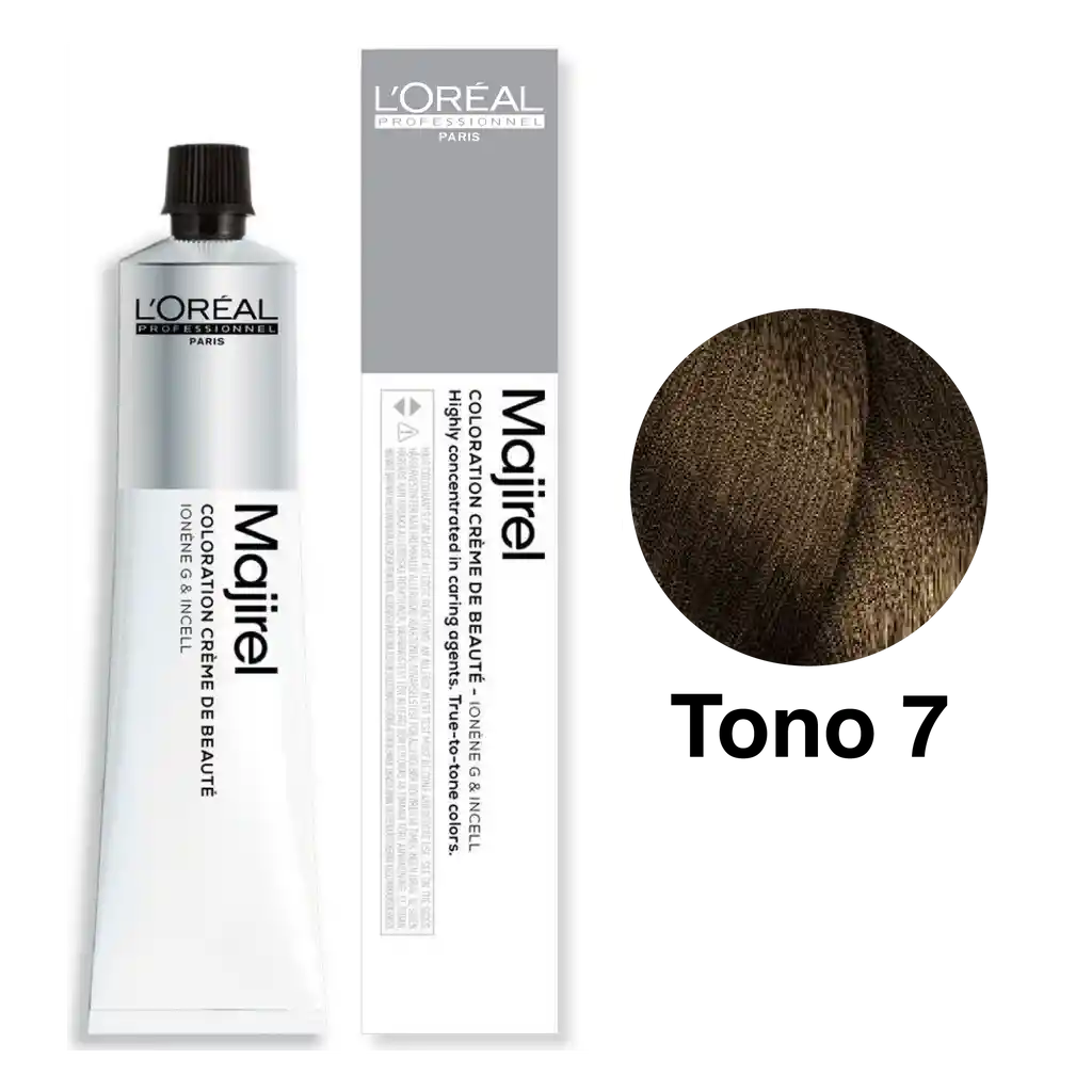 Tintes L'Oréal Mejirel 7° Rubio - Despacho Inmediato Incluye Oxidante de 60 ml Majirel es la mayor marca de L'Oréal Professionnel y el color profesional legendario El cabello gris se cubre al 100% y queda sedoso. Majirel tiene más de 200 tonos disponibles para cubrir todas las expectativas de las mujeres. - Color permanente. Profundos y de larga duración, color intenso. - Puede oscurecer y aclarar hasta 3 tonos. - 35 min dependiendo del servicio ofrecido por tu profesional porque el servicio total puede variar. Producto 100% Original y Garantizado.