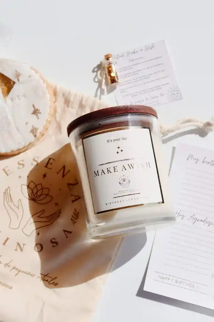 RITUAL DE CUMPLEAÑOS: VELA LEMON CAKE TARJETA PARA ESCRIBIR ESTRELLITAS BIG COOKIE MAKE A WISH AROMA: BIRTHDAY LEMON CAKE