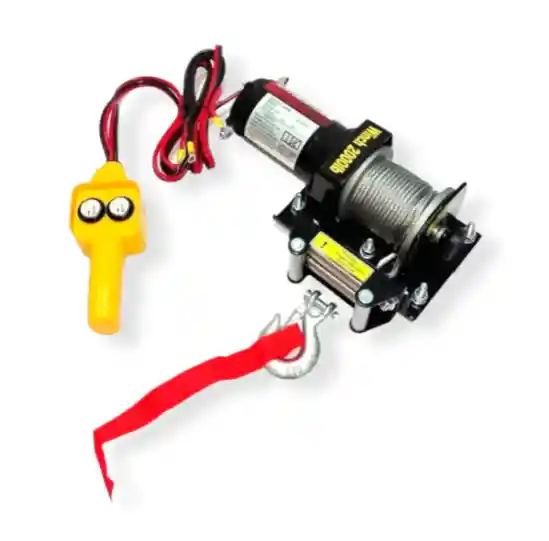 CARACTERISTICAS • 12V • 2000 LIBRAS • Instalación Fácil • Control remoto con 1.5 mts de cable • Incluye Patín y soporte para la instalación. • Guaya de 7.5 metros. • Potencia 3/4 HP - 560W • Diámetro del Cable 5/32" • Ciclo de Trabajo 1 minuto de trabajo x 5 de descanso. • Marca USA TOOLS