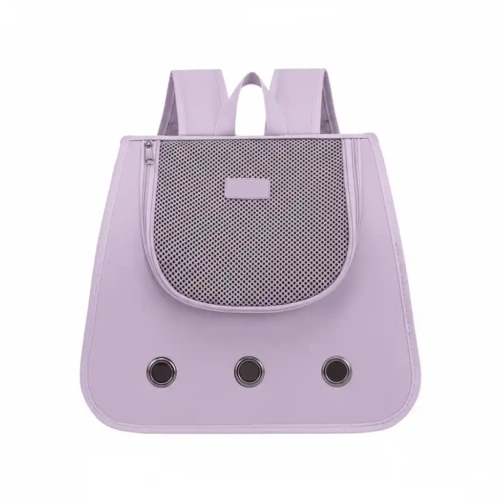 Transportador plegable tipo baúl, ideal para gatos o perros pequeños/medianos. Mallas laterales para ventilación, visor frontal en acrílico y agujeros para mayor respiración. Es liviano, cómodo de llevar, fácil de guardar. Tamaño: 35x26x30 cm. Color lila.