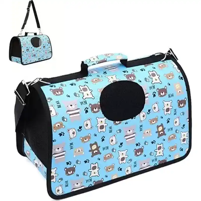 Bolso para transportar a tu mascota de una manera segura, ideal para viajes, paseos o ir al veterinario. Es una maleta muy cómoda el piso es acolchado, cuenta con red de ventilación para que tu mascota pueda visualizar. Tiene agarradera en la parte superior, para que lo puedas llevar al estilo maletín o bolso de mano. Medidas: Largo 37 cm x Ancho 19 cm x 23 Alto Bolso transportador, para mascotas pequeñas ya sea perros o gatos. 1 Bolso