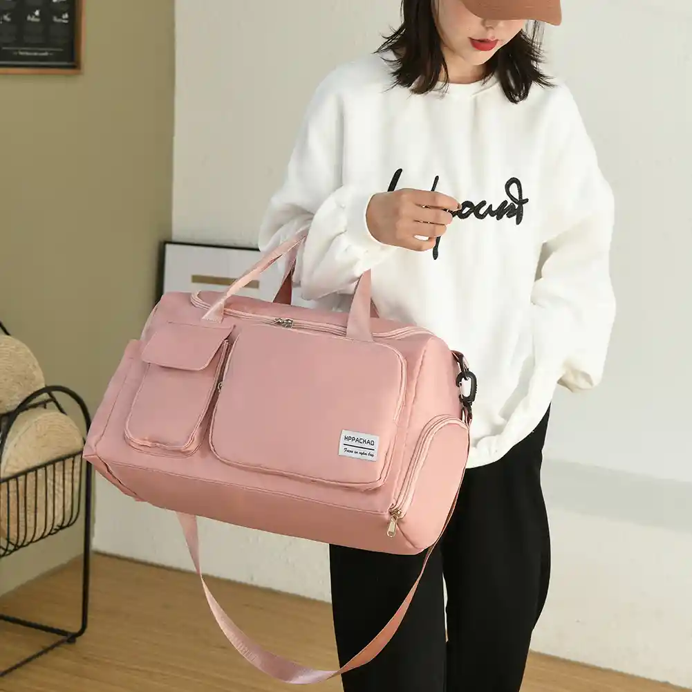 Características: El diseño general de la bolsa es moderno, simple y elegante. Se puede llevar en sentido transversal o de mano. Tiene una variedad de estilos de espalda. ¡Puedes lucir más enérgico y a la moda con él! Almacenamiento multicapa el exterior de la bolsa está equipado con prácticos bolsillos delanteros, bolsillos laterales y bolsillos traseros, que son convenientes para llevar varios artículos en cualquier momento. Compartimento independiente para zapatos: el lateral está diseñado con bolsillos independientes y agujeros de aire, que pueden contener varios tipos de zapatos deportivos. Es limpio, higiénico, cómodo y práctico, y conveniente para nadar, yoga y otros deportes y escenas de fitness Separación de seco y húmedo: la bolsa de fitness tiene una zona seca y una zona húmeda, que se colocan por separado. Los artículos secos se pueden colocar en la zona seca, y las cremalleras y las bolsas de agua a prueba de fugas de textura se pueden instalar en la zona húmeda. Ropa, toallas, artículos de tocador, etc. que están mojados con sudor se pueden colocar por categoría, que es fresco, limpio e higiénico. Especificaciones: Material: tela Oxford Tamaño: 44x20x26cm Color: Gris, morado, azul y Salmon Tu compra Incluye: 1 Maletín Viaje