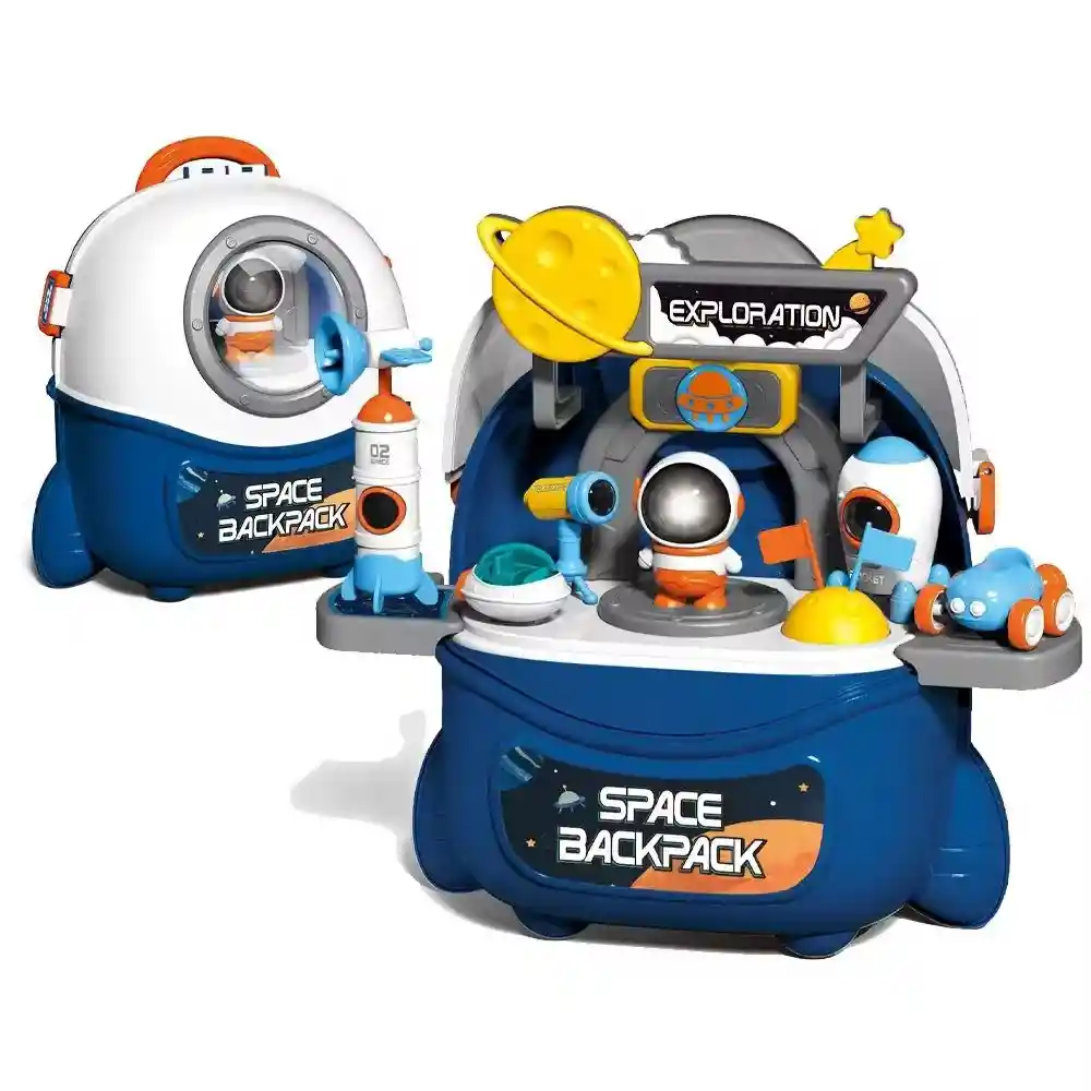 Set portátil inspirado en el mundo espacial que permite a los niños jugar, imaginar y aprender mientras crean sus propias aventuras como pequeños astronautas. Incluye accesorios temáticos y una maleta que se convierte en estación de juego, ideal para llevar a cualquier lugar. Características principales: Diseño de astronauta con temática espacial llamativa para estimular la imaginación. Maleta 2 en 1: se abre y se convierte en estación de juego didáctica. Incluye accesorios y piezas de juego estilo exploración espacial. Material resistente y ligero, ideal para niños pequeños. Fácil de transportar gracias a su formato tipo maletín. Perfecto para fomentar el juego simbólico, la creatividad y la narración de historias. Ideal para niños que aman el espacio y disfrutan crear mundos imaginarios mientras juegan.