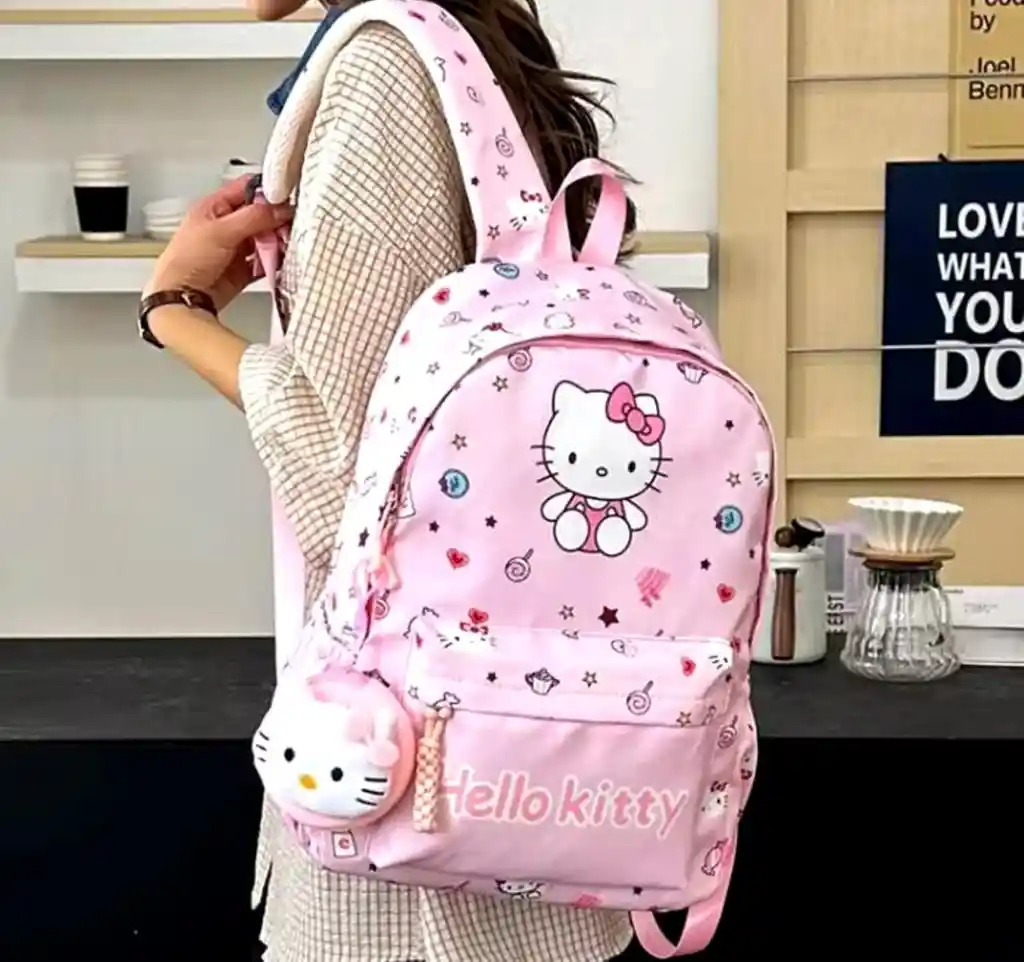 Maleta Sanrio • Medidas: 43 x 30 x 16 cm aprox • Gran capacidad, ligera y suave • Cómoda para adaptase a la espalda *Debido a factores como la luz y las pantallas, existen ligeras diferencias entre el producto y la imagen*