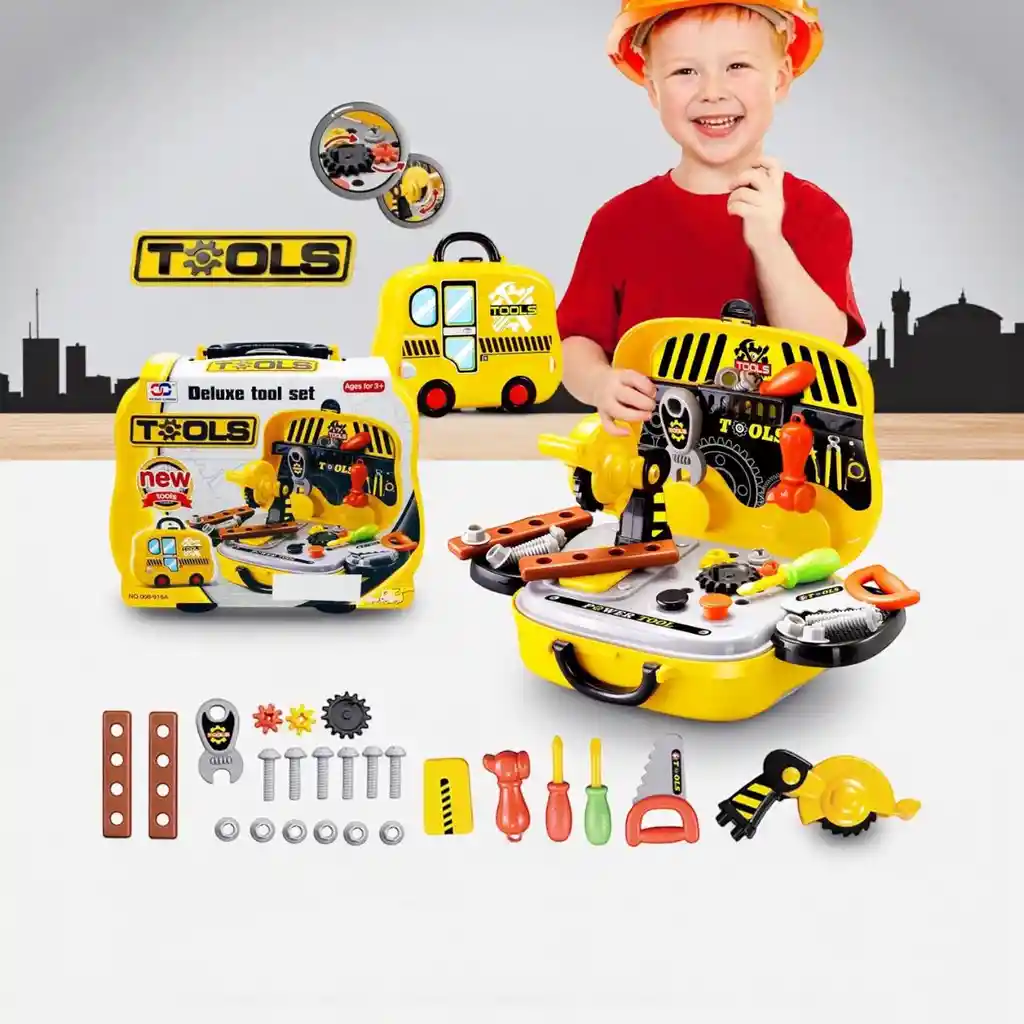Construye y arregla con este fantástico juego de herramientas de mano de lujo. A los más pequeños les encantará tener su propio camión de herramientas, que pueden rodar o transportar. Está repleto de todo lo que un profesional de la construcción podría desear, incluido un martillo, destornilladores, llave inglesa y sierra mecánica en miniatura. Ayude a sus hijos a encontrar cosas para 'arreglar' en la casa o anímelos a usar su imaginación y construir nuevas creaciones. El juego de juguetes perfecto para constructores en ciernes a partir de tres años. Especificaciones Años: 3 - 10 años
