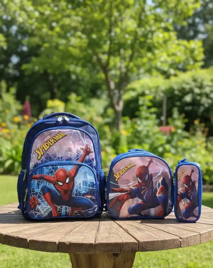 🎒🕷️ Set Escolar Spider-Man – Mochila + Lonchera + Cartuchera 🕷️🎒 ✨ Set escolar infantil con espectacular diseño de Spider-Man, ideal para los pequeños fans del superhéroe 🦸‍♂️. Incluye mochila, lonchera y cartuchera, todos combinados en elegantes tonos negro y rojo ❤️🖤. 🎒 Mochila: amplia, cómoda y con cierres resistentes, perfecta para cuadernos y útiles escolares 📚✏️ 🥪 Lonchera: práctica para llevar alimentos y snacks de forma organizada 🍎🥤 ✏️ Cartuchera: ideal para guardar lápices, colores y accesorios escolares 🎨🖊️ 🧵 Material resistente, fácil de limpiar y pensado para el uso diario. 🎁 Ideal para el colegio, salidas o como regalo especial. ⭐ Diseño llamativo • ⭐ Funcional • ⭐ Duradero