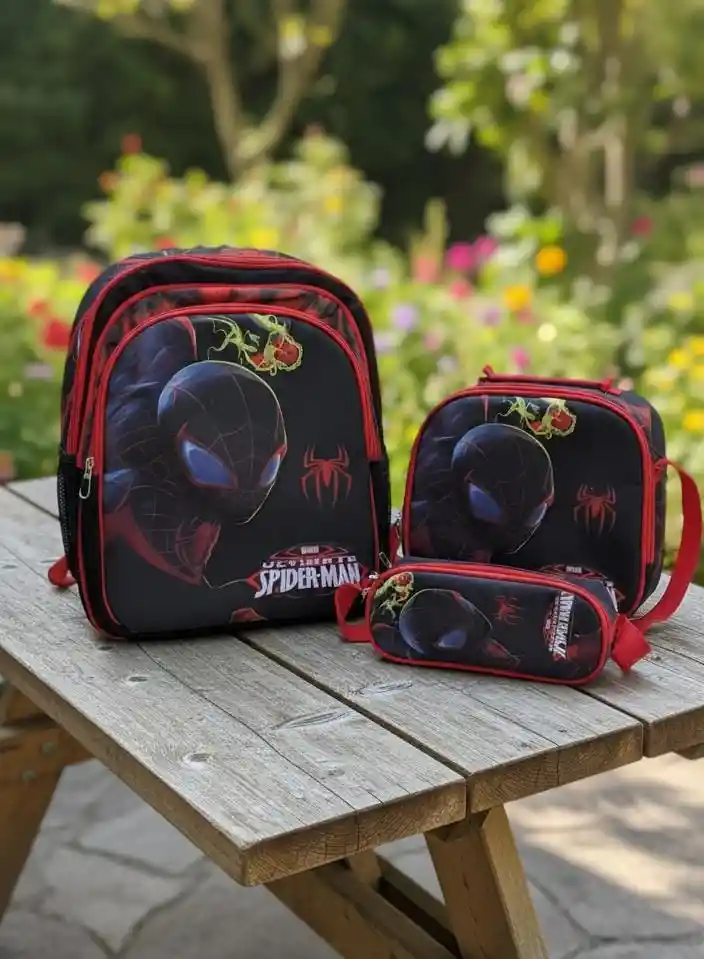 🎒🕷️ Set Escolar Spider-Man – Mochila + Lonchera + Cartuchera 🕷️🎒 ✨ Set escolar infantil con espectacular diseño de Spider-Man, ideal para los pequeños fans del superhéroe 🦸♂️. Incluye mochila, lonchera y cartuchera, todos combinados en elegantes tonos negro y rojo ❤️🖤. 🎒 Mochila: amplia, cómoda y con cierres resistentes, perfecta para cuadernos y útiles escolares 📚✏️ 🥪 Lonchera: práctica para llevar alimentos y snacks de forma organizada 🍎🥤 ✏️ Cartuchera: ideal para guardar lápices, colores y accesorios escolares 🎨🖊️ 🧵 Material resistente, fácil de limpiar y pensado para el uso diario. 🎁 Ideal para el colegio, salidas o como regalo especial. ⭐ Diseño llamativo • ⭐ Funcional • ⭐ Duradero
