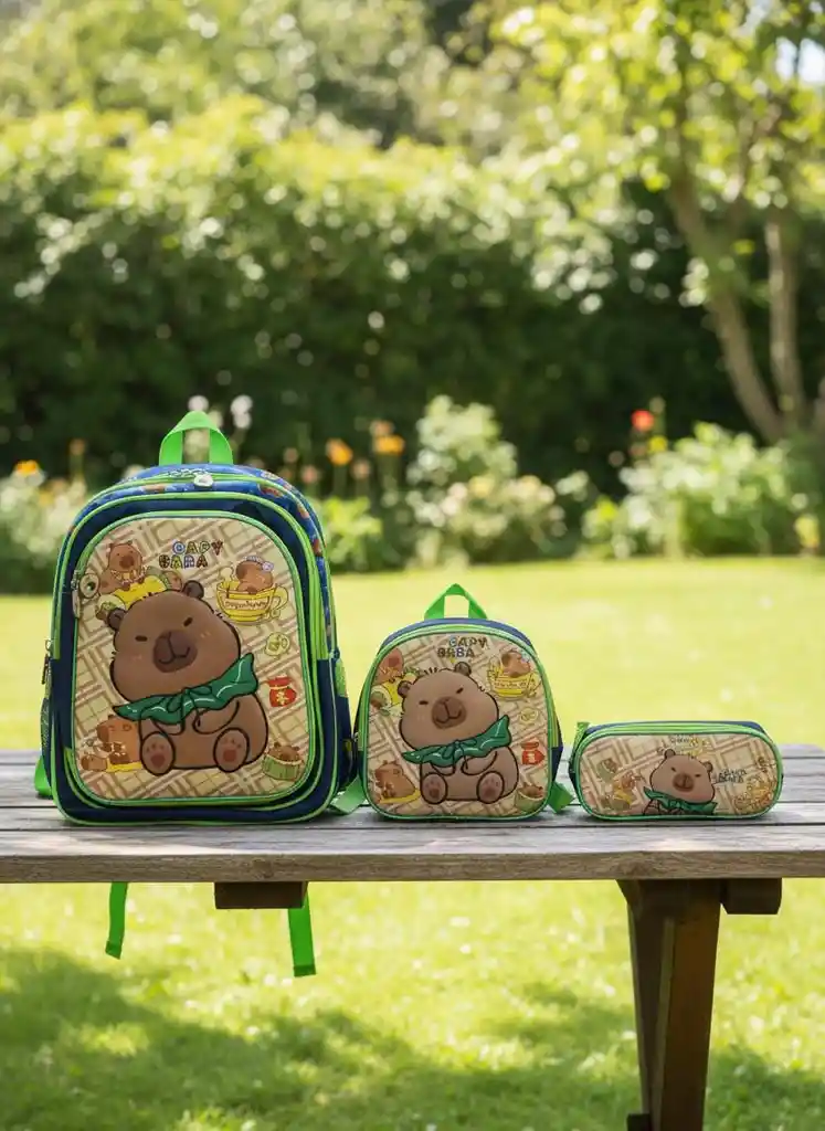 🎒🐻 Set Infantil Capibara – Mochila + Lonchera + Cartuchera 🐻🎒 ✨ Encantador set infantil con diseño de capibara , ideal para niños y niñas que aman los personajes dulces y colores suaves 🤎🌟. Incluye mochila, lonchera y cartuchera, perfectamente combinadas. 🎒 Mochila: tamaño ideal para el colegio, cómoda y liviana 📚 🥪 Lonchera: práctica para llevar la merienda diaria 🍪🧃 ✏️ Cartuchera: perfecta para lápices, colores y útiles escolares 🖍️✂️ 🌈 Colores cálidos y diseño adorable que enamora a primera vista 🧵 Material resistente, fácil de limpiar y duradero 🎁 Ideal para colegio, salidas o como regalo especial 💖 Tierno • 💖 Funcional • 💖 Combinado perfecto
