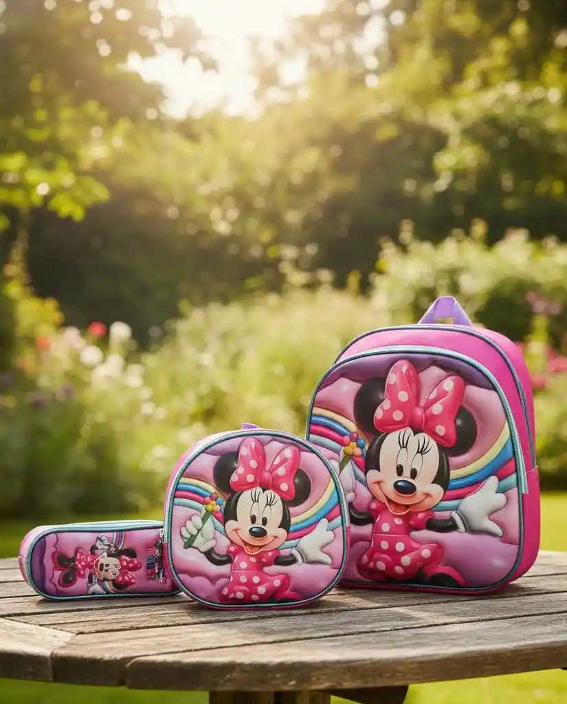 🎀🎒 Set Infantil Minnie Rosa – Mochila + Lonchera + Cartuchera 🎒🎀 💖 Hermoso set infantil con diseño encantador de Minnie, ideal para las pequeñas que aman el color rosa y los personajes clásicos ✨🌈. Todo el set combina perfectamente y luce espectacular. 🎒 Mochila: amplia, cómoda y liviana, ideal para el colegio 📚 🥪 Lonchera: práctica y funcional para llevar la merienda 🍎🧃 ✏️ Cartuchera: perfecta para lápices, colores y útiles escolares 🖍️✂️ 🌸 Colores vivos y acabado llamativo 🧵 Material resistente y fácil de limpiar 🎁 Ideal para colegio, jardín o como regalo especial 💕 Dulce • 💕 Práctico • 💕 Súper lindo ¡Un set que enamora a primera vista! 🥰✨