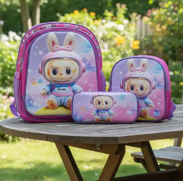 🎒🐰 Set Infantil Labubu – Mochila + Lonchera + Cartuchera 🐰🎒 ✨ Hermoso set infantil con tierno diseño Labubu con orejitas de conejo, ideal para niños y niñas. Incluye mochila, lonchera y cartuchera, todos combinados en tonos café y rojo 🤎❤️ con detalles divertidos y modernos. 🎒 Mochila: cómoda y espaciosa, perfecta para cuadernos y útiles escolares 📚✏️ 🥪 Lonchera: práctica para llevar la merienda diaria 🍎🥤 ✏️ Cartuchera: ideal para organizar lápices, colores y accesorios 🎨🖊️ 🧵 Material resistente, liviano y fácil de limpiar, ideal para el uso diario. 🎁 Perfecto para el colegio, salidas o como regalo especial. 🌟 Diseño tierno • 🌟 Funcional • 🌟 Duradero
