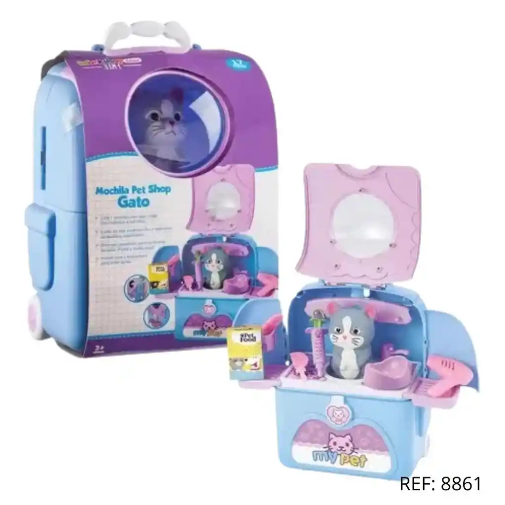 La Mochila de Juguete Pet Shop Kitten 3 en 1 de Multikids es un tierno set de juego que se transforma en mochila, maletín o estación de cuidado. Incluye 17 piezas y un gatito de juguete como mascota principal. Ideal para niñas desde los 3 años, fomentando el juego imaginativo y el cuidado de mascotas. MEDIDAS 13CM X 19 CM X 29CM APROX.